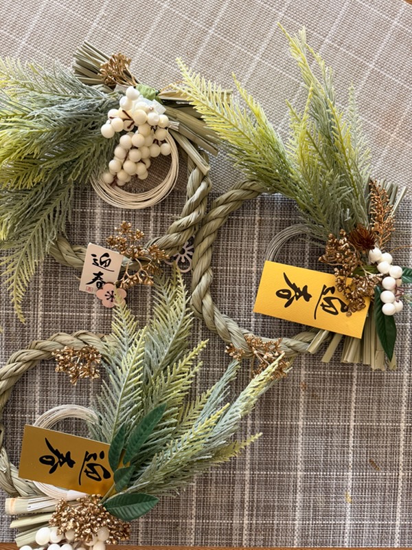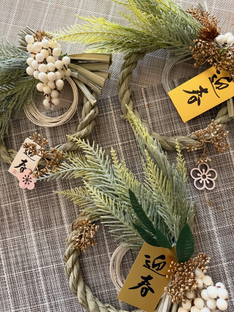 数年前から百円均一のしめ縄にちょい足しし、手作りをしています!